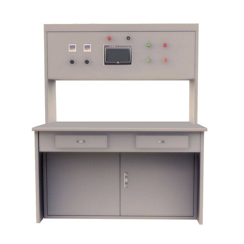 This all-in-one workstation consolidates the testing interface with an enclosed storage cabinet. The top surface accommodates custom fixturing and tooling layouts, while the cabinet interior neatly organizes accessories and spares—optimizing valuable shop floor real estate at the final inspection station.